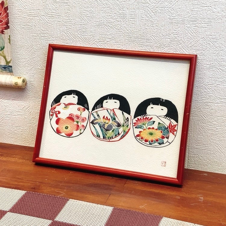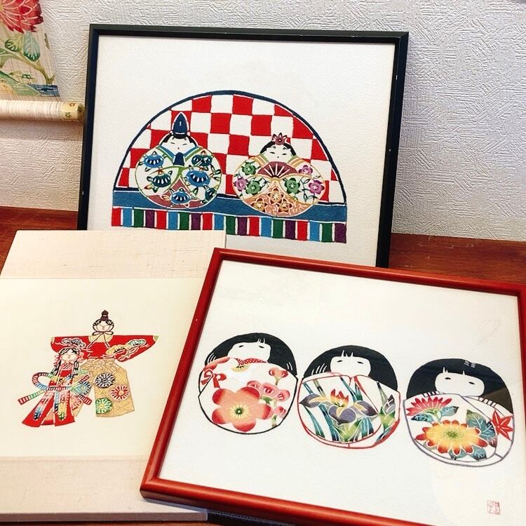 紅型染めの三人官女の可愛らしい額絵です。