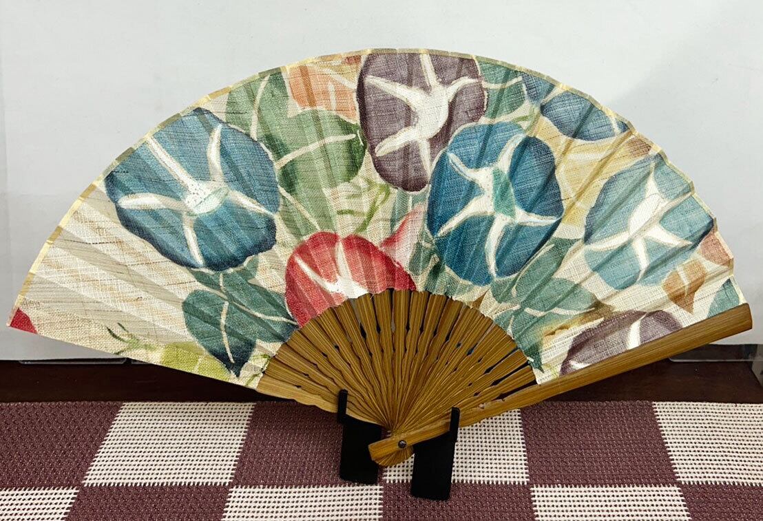 7.隈取り:紅型の大きな特徴の一つです。色の上から隈取り用の刷毛で濃い色のぼかしを入れ陰影をつけます。ぼかし染めは図柄にアクセントをつけ立体感を出す効果があります。